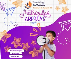 As escolas municipais estarão realizando matrículas para novos estudantes no período de 04/02 a 13/02, nos seguintes horários: